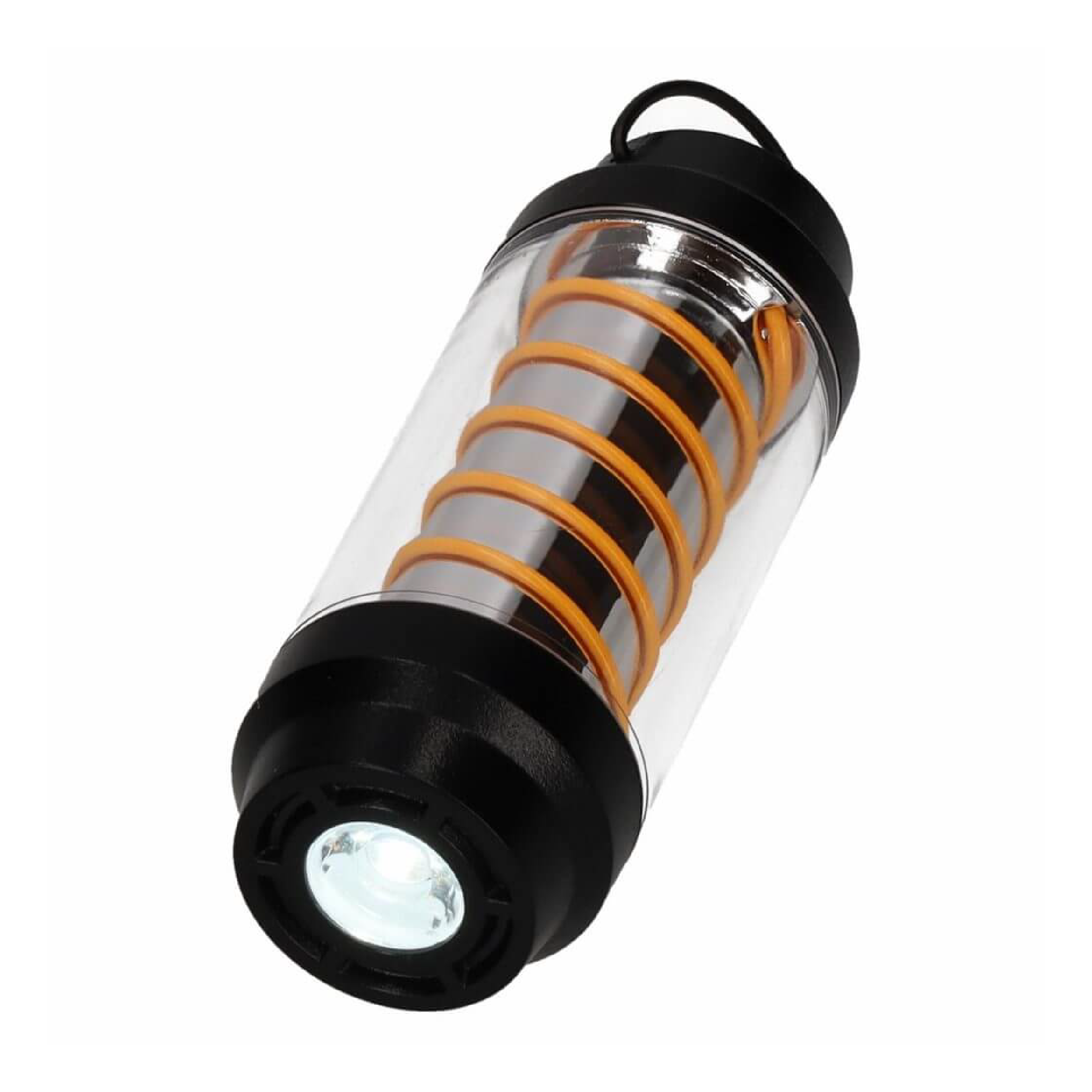 Dank des stabilen Ständers kannst du die Lampe sicher auf jeder Oberfläche aufstellen, und mit dem praktischen Karabinerhaken kannst du sie genauso einfach an einer Schlaufe, einem Ast oder einem Zeltstange aufhängen. Leicht, praktisch und immer einsatzbereit!