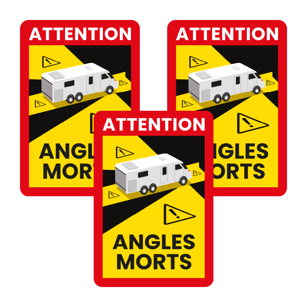 The angles morts RV sticker set of 3 with 2 magnetic stickers is mandatory for all motorhomes over 3.5t. Don’t forget it!