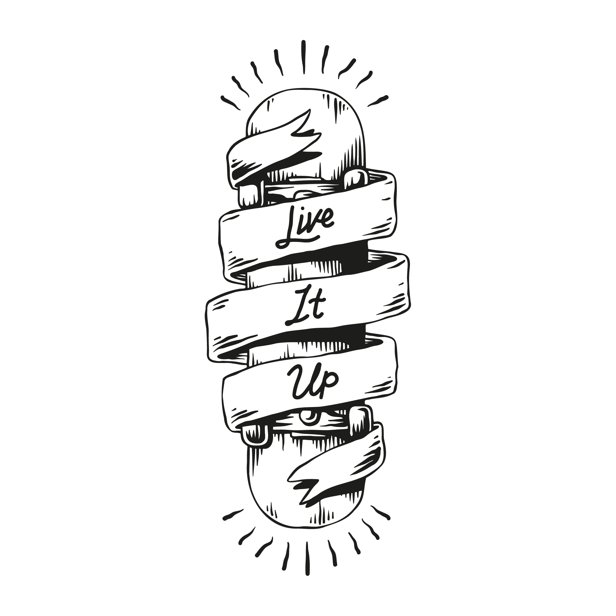 L'autocollant skateboard Live it up montre votre passion pour l'aventure et un mode de vie actif. Parfait comme décoration sur votre skateboard ou pour donner une touche personnelle à votre véhicule de voyage. C'est aussi un excellent cadeau pour un ami qui aime le skate ou l'aventure !