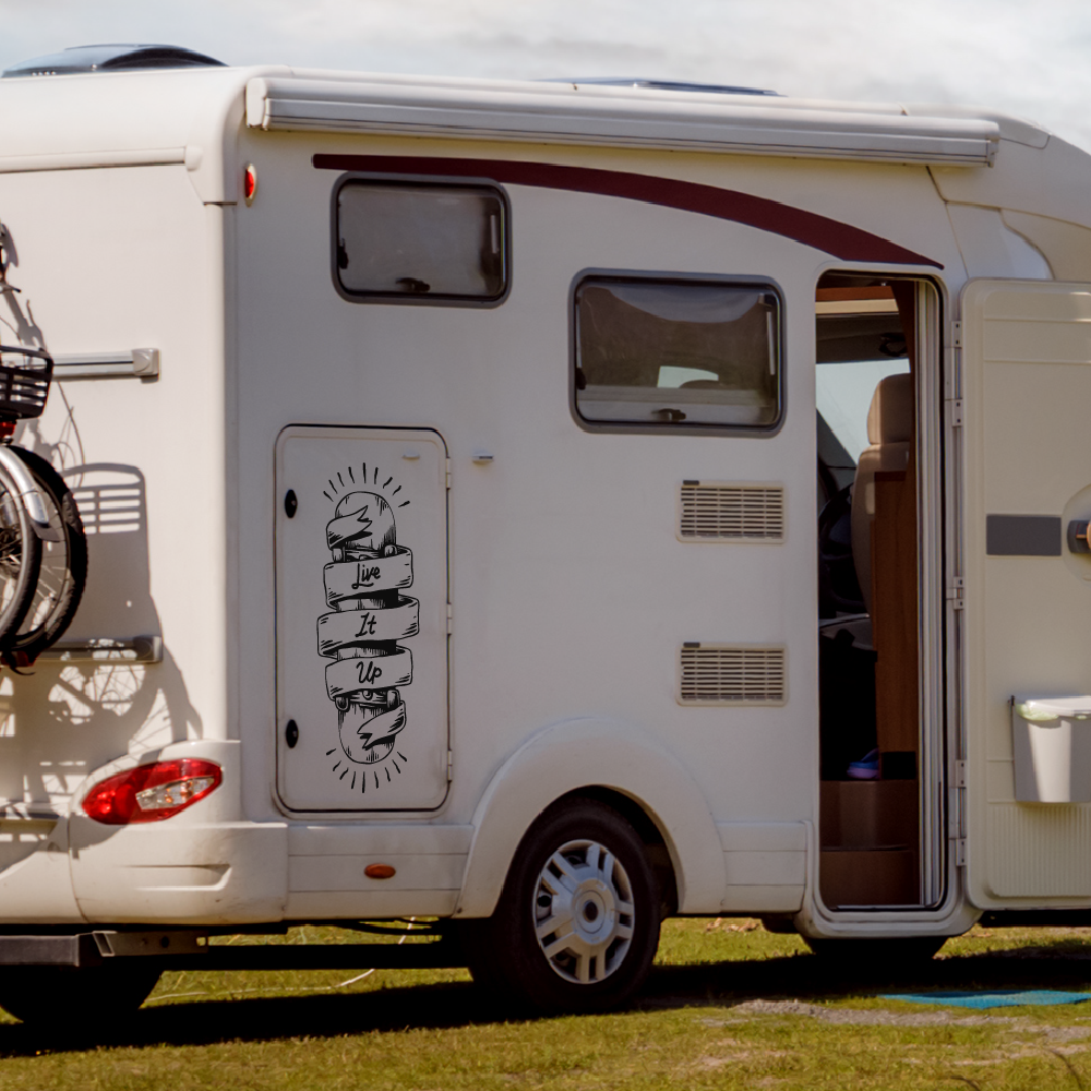 Personnalisez votre camping-car, votre caravane, votre van, votre voiture, votre 4×4 ou votre bateau avec votre propre texte et vos propres formes.