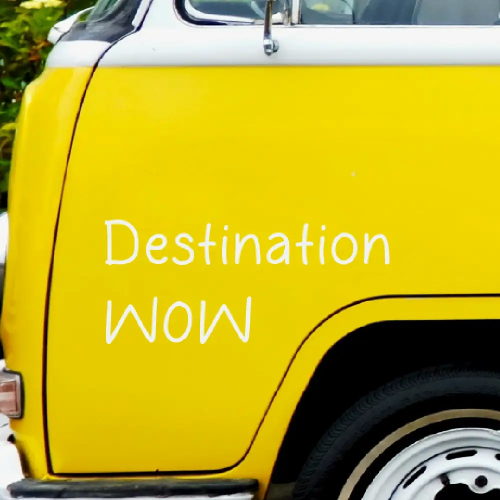 Kleef deze Destination WOW sticker op je reis voertuig en hij laat je stranden op de onvergetelijkste plaatsen in de wereld.